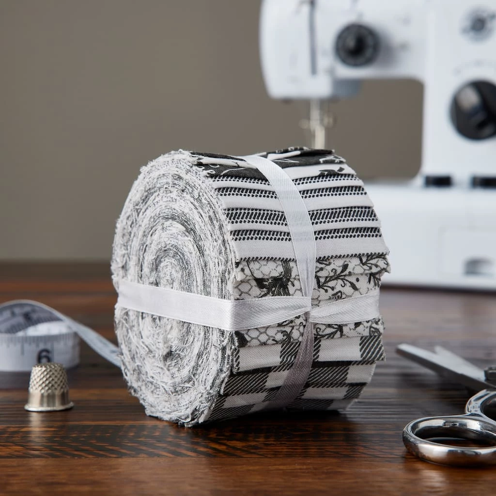 Craft a handmade rug with these fabric strips by Loops & Threads. They feature a variety of black and white prints like polka dots, stripes, checker, farm livestock and bees. You can also use them as trims for placemats or table runners.