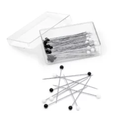Secure multiple layers of fabric at once while quilting with the Glasshead Leader Pins Pack by Loops and Threads. These pins are easy to locate when pinned into the fabric and can withstand heat when ironed over. They are perfect for stitching and quilting projects.