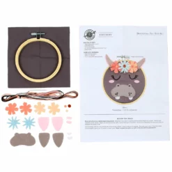 Craft an adorable wall hanging for your child’s play room or nursery or a wonderful handmade gift with this felt hoop kit. A lovely way to relax on a free afternoon or rainy day, just addΒ the tools needed to transform the included materials into a sweet hippo face.